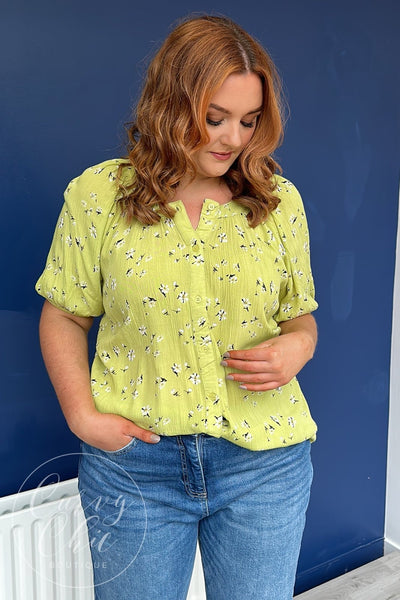 With an all-over floral print on a summery pistachio green background, this top is part of our sustainable collection and will be a fav for years to come. Wear with our super stretch jeggings and strappy heels for the perfect date night style or pair with our white bengaline shorts and matching jacket for a walk on the beach!